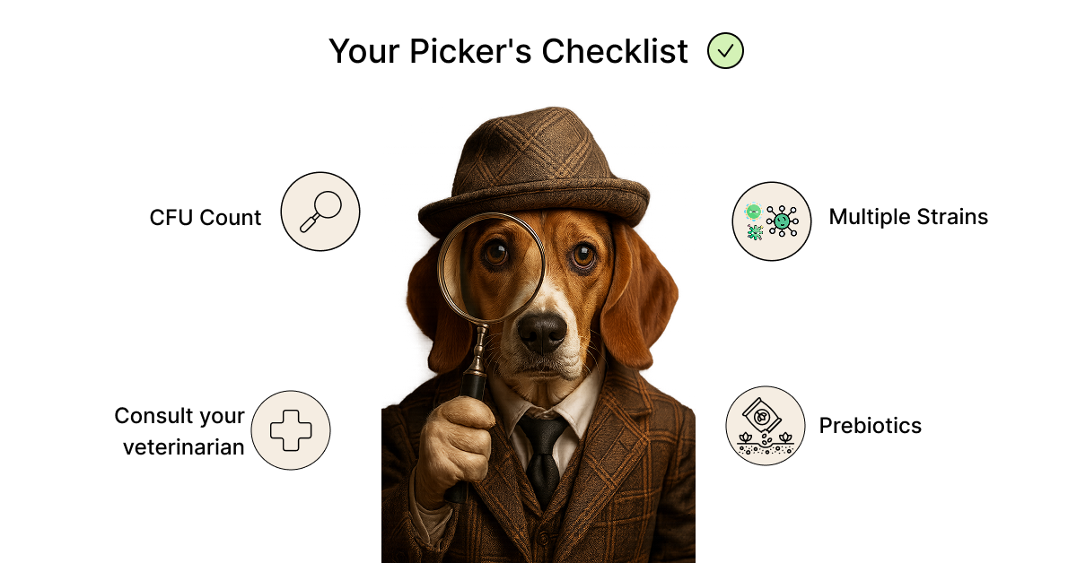 The health and happiness of dogs depend on their digestion system and their gut represents the core of their well-being. A dog’s digestive system functions as a complex bacterial ecosystem because it contains billions of bacteria with both positive and negative effects. The disruption of this sensitive equilibrium results in digestive problems such as diarrhea and gas production and bloating and discomfort in dogs. Probiotics serve as the solution. Your dog’s digestive system experiences a transformative change when you introduce beneficial bacteria. Choosing the appropriate dog probiotic product from numerous market alternatives becomes difficult for pet owners. The guide examines the top dog probiotics to assist dog owners in their selection process. What Are Probiotics and Prebiotics? Probiotics consist of live beneficial microorganisms which include bacteria and some yeasts that become beneficial when administered in proper amounts to deliver health advantages. The bacteria require their assistance to create a balanced ecosystem within the gut. Prebiotics function as dietary fiber components which act as food for beneficial bacteria in your dog’s gut. The beneficial bacteria in the probiotic garden require prebiotics as they function similarly to plant fertilizers. The main prebiotics found in dog supplements consist of Fructooligosaccharides (FOS) and inulin. A synbiotic product combines probiotics and prebiotics into a single solution which provides comprehensive gut health support. Top Dog Probiotics for a Happy Tummy This guide presents veterinarian-approved probiotics which have received high ratings to help manage dog digestive problems. 1. Purina Pro Plan Veterinary Diets FortiFlora Probiotic FortiFlora stands as one of the market’s leading probiotics because veterinarians consistently endorse it for its straightforward yet effective design. The product delivers excellent results for treating diarrhea and supporting proper stool health. The product exists as a palatable powder contained in convenient single-dose sachets. Add this powder directly to your dog’s regular meals. Link to Buy: Purina Pro Plan Vet Direct 2. Zesty Paws Probiotic Bites These soft chews offer dogs an excellent alternative to powders because they come in appealing flavors that dogs will accept. These soft chews contain multiple probiotic strains in a strong formula which makes them popular among dogs that are finicky about their food. Link to Buy: Zesty Paws Official Website 3. VetriScience Vetri Mega Probiotic This product stands out because its high-potency multi-strain formula provides strong digestive and immune system support for pets in need. Dogs who experience food allergies benefit from this product because it contains no dairy components. Link to Buy: VetriScience Website 4. Honest Paws Pre + Probiotics The comprehensive gut health solution combines probiotics with prebiotics and digestive enzymes into a single treatment product. The product is sold as powder which allows for convenient mixing with your dog’s food. Link to Buy: K9 Vitality (from the makers of Honest Paws) How to Choose the Right Probiotic Before initiating any new supplement consult with your veterinarian. Your veterinarian can identify the root cause of digestive problems in your dog while suggesting the optimal treatment approach. Examine the CFU Count: Colony-Forming Units (CFU) show the actual number of active bacteria in a dosage. Choose products which contain bacterial counts in the billions because they offer greater potency. Different bacterial strains offer various health benefits thus you should select products containing multiple strains. A multi-strain formula often provides broader support. A supplement containing prebiotics such as FOS or inulin will achieve better results in the long term. Check the ingredient label to confirm that the product maintains its CFU count throughout its shelf life period. The Bottom Line Probiotics serve as an effective solution for dog digestive health management. A high-quality probiotic product with suitable strain combinations and potency will provide relief to your dog’s stomach while enhancing stool quality and leading to better overall health and happiness. Disclaimer: The information presented in this article serves educational purposes while replacing veterinary guidance. Consult your veterinarian to address any health concerns about your pet.