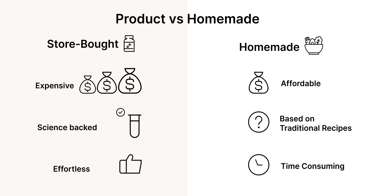 As a dog owner, you want what’s best for your furry friend’s health. You’ve likely heard about the benefits of probiotics for improving digestion, boosting immunity, and even helping with issues like diarrhea and allergies. This leads to a crucial question: should you buy a specially formulated canine probiotic, or can you give your dog homemade probiotic-rich foods like yogurt or kefir? This guide breaks down the pros and cons of both approaches to help you make an informed decision. Store-Bought Probiotics: The Convenient & Targeted Choice Commercial probiotics are specifically designed for dogs and are the most common choice for owners looking for a reliable solution. These products come in various forms, including powders, chews, and capsules. Pros: Guaranteed Potency & Specific Strains: This is the biggest advantage. A reputable store-bought product will list the exact strains of bacteria (like Enterococcus faecium or Lactobacillus acidophilus) and guarantee the number of Colony Forming Units (CFUs). This is critical if you’re targeting a specific health issue. For example, the best probiotic for dogs with diarrhea will contain strains clinically studied for that purpose. Convenience and Ease of Use: There’s no prep work involved. You simply add the recommended dose to your dog’s food. This makes it easy to ensure your dog gets a consistent amount every day. Formulated for Survival: The top-rated dog probiotics are designed to survive the harsh acidic environment of a dog’s stomach, ensuring the beneficial bacteria reach the intestines alive and ready to work. Safety and Quality Control: Trusted brands undergo rigorous testing to ensure their products are free from contaminants and meet the potency claims on the label. Cons: Cost: High-quality, high-CFU dog probiotics can be an ongoing expense. The price often reflects the research and quality control that goes into the product. Fillers and Additives: Some lower-quality or affordable dog probiotics may contain unnecessary fillers, artificial flavors, or preservatives that you might prefer to avoid. Always read the label carefully. Best For: Owners who need to address a specific health concern (diarrhea, allergies, post-antibiotic care), value convenience, and want the assurance of a scientifically formulated, dose-specific product. Homemade Probiotics: The Natural & Economical Option Homemade probiotics typically involve giving your dog small amounts of fermented foods like plain, unsweetened yogurt, kefir, or even fermented vegetables like sauerkraut. Pros: Cost-Effective: Making yogurt or kefir at home is significantly cheaper than buying a monthly supply of commercial supplements. Natural & Whole-Food Based: You have complete control over the ingredients. You know your dog is getting a whole food without any fillers or artificial additives. Diverse Bacteria: Fermented foods can contain a wide and diverse range of beneficial bacteria, which can be great for general gut health maintenance. Cons: Unknown Potency and Strains: You have no way of knowing which specific strains of bacteria are in your homemade batch or in what amount. The CFU count can vary wildly from one batch to the next, making it unreliable for therapeutic use. Dairy & Palatability Issues: Many dogs are lactose intolerant, so dairy-based options like yogurt and kefir can sometimes cause digestive upset—the very thing you’re trying to prevent. Harmful Ingredients: You must be extremely careful. For example, store-bought yogurt is often sweetened with xylitol, which is highly toxic to dogs. You must only use plain, unsweetened varieties. Not Canine-Specific: The bacteria in human foods are not necessarily the most beneficial strains for a dog’s unique digestive system. Best For: Healthy dogs without specific issues, where the goal is a general wellness boost from a whole-food source. It’s a good option for owners who are on a budget and are diligent about using pet-safe ingredients. Comparison Chart: Dog Probiotics [Brand vs. Homemade] Feature Store-Bought Probiotics Homemade Probiotics (e.g., Yogurt/Kefir) Primary Goal Targeted therapeutic support General wellness Strain Specificity Yes, specific strains listed No, unknown mix of strains Potency (CFU) Guaranteed and consistent Unknown and varies per batch Convenience High (scoop or chew) Low (requires preparation) Cost Higher initial and ongoing cost Very low cost Safety Regulated and tested Risk of using unsafe ingredients (xylitol) Best For… Dogs with diarrhea, allergies, yeast issues, or on antibiotics. Healthy dogs needing a general gut health boost. Conclusion: Which Probiotic Is Best for My Dog? So, are dog probiotics worth it? Absolutely. But the choice between store-bought and homemade depends on your goal. The best canine probiotics for health condition management or antibiotic treatment support or reliable dosage delivery come from top-rated dog probiotic powders or chews from reputable brands. The ability to evaluate dog probiotics and select one with established strains represents an essential advantage. A spoonful of plain unsweetened homemade yogurt or kefir serves as an excellent natural and budget-friendly supplement for maintaining healthy gut function in dogs who are already in good health. The most secure and efficient way for new probiotic users to begin is by selecting a well-reviewed commercial product. Your veterinarian should help you decide the most suitable approach for your dog’s specific requirements.